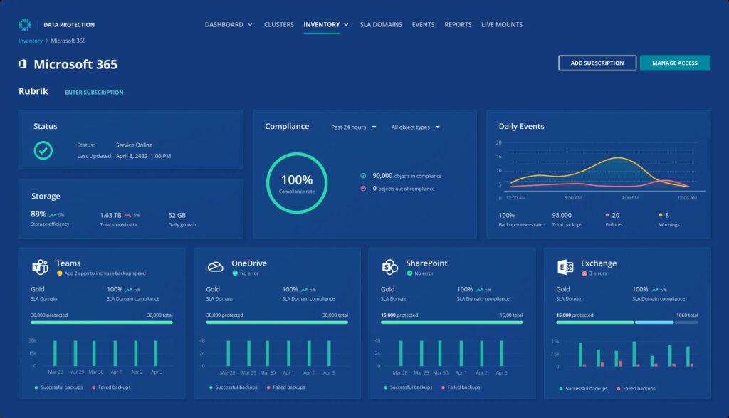Rubrik zagotavlja varno programsko platformo za ublažitev izgube podatkov z natančno obnovitvijo in brezhibnim upravljanjem v več oblačnih okoljih.