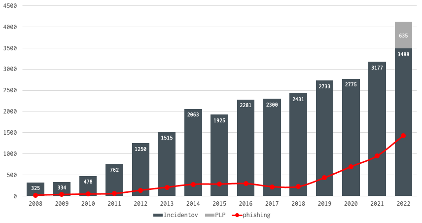 SI-CERT (nacionalni odzivni center za kibernetsko varnost) v zadnjem letnem poročilu o kibernetski varnosti za leto 2022 navaja sledeče alarmantne podatke: